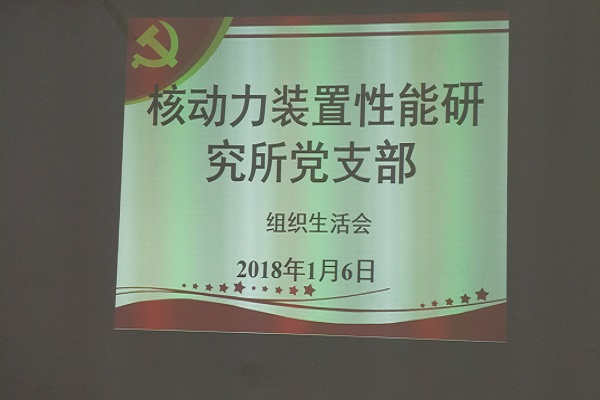 2018年1月6日晚19时,核动力装置性能研究所党支部于三甲实验室221室召开专题组织生活会,开展批评与自我批评。宣传委员孙兰昕同志主持会议,清点与会党员人数后,伴随着雄壮的国歌声,会议正式开始。 &...