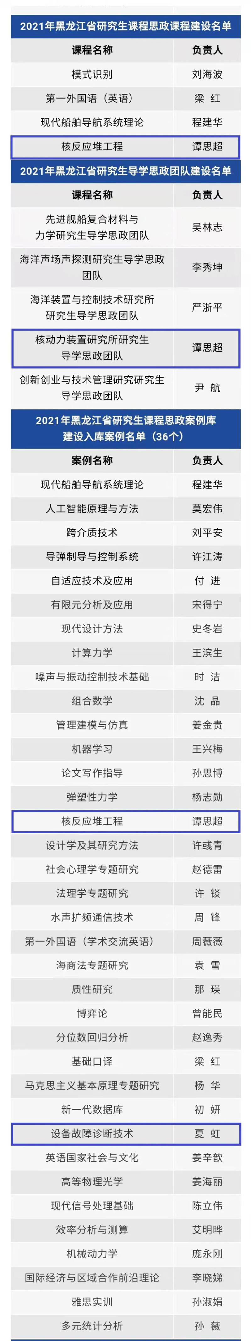 日前,省学位委员会、省教育厅印发通知公布了2021年首届黑龙江省研究生课程思政、导学思政高质量建设项目立项结果。公司申报的《核反应堆工程》入选黑龙江省研究生课程思政课程建设项目,核动力装置研究所研究生导学...