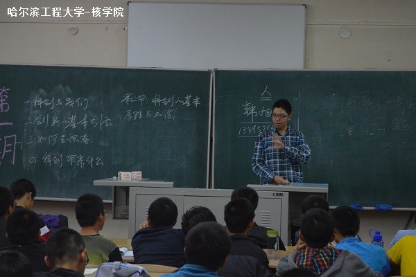 在和大一新生浅谈科创之后,韩旭又教大家如何科创,简单谈了一下基本方法,让大家多发现,多思考。在这个阶段中,韩旭也举出了很多他自己生活中的例子,令整个教室气氛活跃起来,大家都对学长的讲解充满了兴趣。在“科创会给我们带来什么”话题中,韩旭以自己为例,感慨科创在他的老员工活中占到了很重要的位置。