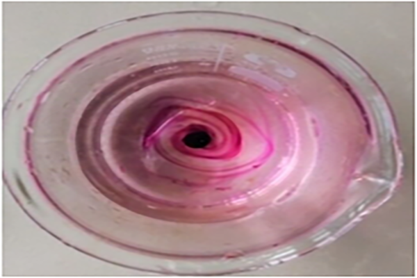 在流迹流线演示实验中,谭博同学大胆创新,跳出了以往的固有思维,采用“固态化学品+有机溶剂”代替了以往的“水+墨水”来显示流线;采用“回旋流线”代替了以往的“直流线”从而很大程度上节省了空间,使得在家实验变得切实可行。