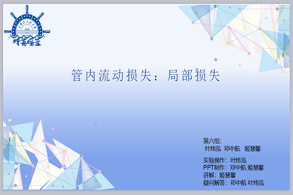 5月27日,《工程流体力学》双语班第六组同学进行了管内流动损失、局部损失的实验。主要分工如下:叶炜泓同学负责实验操作,邓中航同学负责制作PPT,姬慧馨同学负责实验讲解。经过一番讨论,叶炜泓同学利用家里的水池和部分材料进行了实验器材的组装和实验。