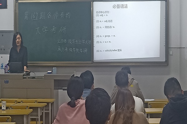 本次活动以小讲座形式展开,主讲老师是新东方老师刘昭君。讲座开始时,刘老师用一段俞敏洪的讲话视频充分吸引同学们的注意力,调动起员工的兴趣,并以乐观积极的语言将考研复习分为三个不同的阶段——基础,强化,冲刺。其中,刘老师格外强调基础阶段的重要性。在互动环节中,刘老师介绍精读文章的技巧和阅读写作的技巧,更是不时以历年真题与名人名言为例,为同学们重点介绍扩充英语语句和分析长难句的要点,获得同学们的认可与赞同。对于同学提出的各种问题,刘老师细心解答,并以自身亲身经历结合多年教学经验,提出简单有效的办法和技巧,为员工指明高效准确的复习与考研准备方法。接着,与先前的考研系列讲座中相同,刘老师为同学们详细介绍考研的词汇和语法的重要性。现场气氛热烈,员工态度积极。最后结束时,刘老师祝福同学们,“不要让语言局限了你的世界”。