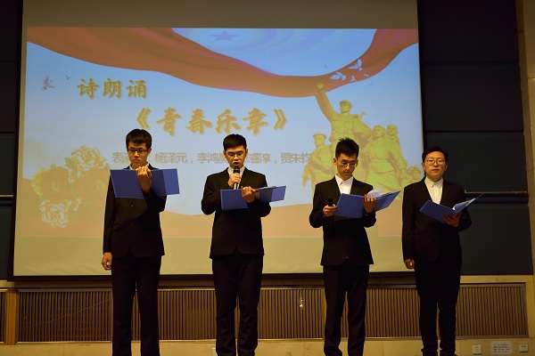 在诗朗诵环节,伴随着激昂的音乐,2018级团员青年朗诵了《青春乐章》,团员青年们抑扬顿挫的语调、饱满昂越的情绪、充满青春风采的表演,赢得了现场人员雷鸣般的掌声。
