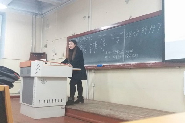 同学们在课下努力地背诵单词,在练习听力和阅读,做历年的四级真题,但心里仍充满紧张,而王宇老师条理清晰、细致入微的讲解无疑给大家指明了备考四级最重要的方向。她先是详细的分析了四级考试的各个部分所占分数比例和难度系数是多少,然后告诉大家如何有的放矢的做训练和答题,告诉大家在两天的时间内应该将重点放在哪,指出听力的篇章部分和阅读中的仔细阅读部分是决定考生四级成绩的重要因素,为大家提供了一套可行的答题思路和时间规划。
