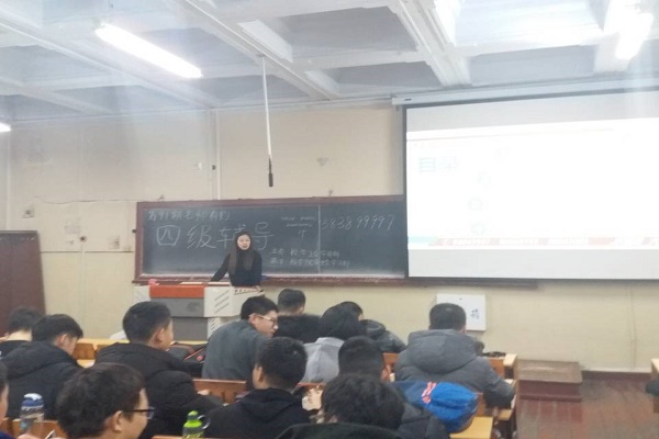 因距四级考试仅有两天,同学们对此次名师有约非常重视,教室内人满为患。