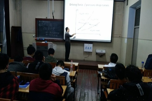 在开始时王老师提出教室中的一些现象,向同学们指出了一系列的问题,并结合自己以前的学习经历,向同学们阐述学习要靠自觉的道理。然后,以自己在外国留学的经验向同学们介绍了国内和国外的一些差别。以今年他在研究生面试发现的一些问题向同学们讲明作为核公司的员工应当怎么做。最后,王老师以他现在的工作内容为例,向我们展示一些核科学方面的知识。