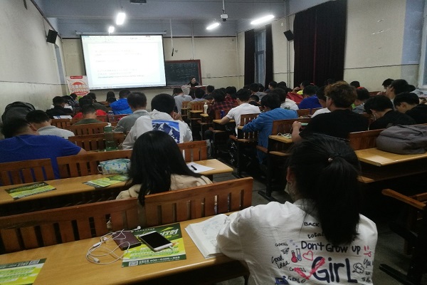 韩小薇老师在讲课过程中,为同学们分析了六级听力的解题技巧,并提出了一些问题,同学们踊跃回答。