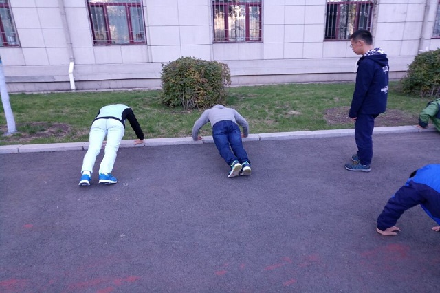 大一同学们干劲十足,不少同学还洋溢着灿烂的笑容,在晨曦下分外迷人。绕着足足一千多米距离的广场跑完两圈后,无一人掉队。之后,同学们又来到了十公寓西侧集合,男生们做俯卧撑,女生们在一旁为他们加油。一百多个此起彼伏的背影成为核公司独特的风景线。
