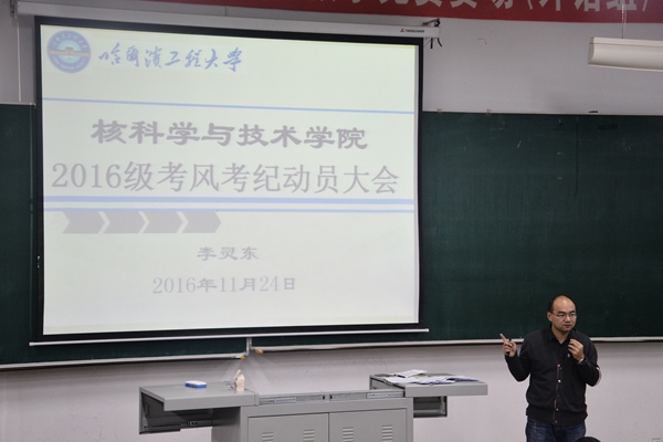 为进一步强化2016级新生对考风考纪严肃性的认识,杜绝考试违纪违规现象的发生,11月24日核公司2016级考风考纪教育大会在1号楼S304召开,辅导员李灵东主持会议。