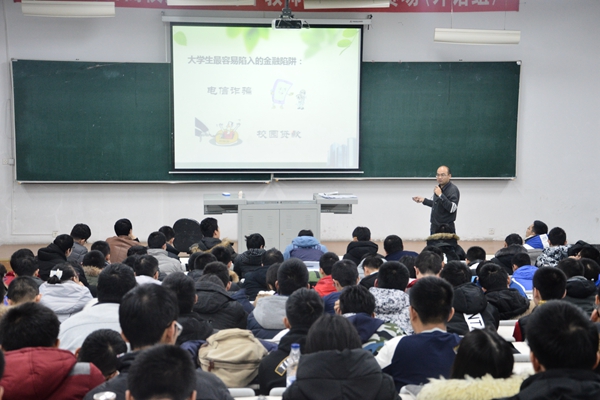 李灵东以PPT的形式从消防安全、防盗、防传销、防诈骗、饮食安全、交通安全和校园贷等方面对2016级本科生进展开安全教育,他重点讲解了当前社会较为关注的校园网贷事件,通过分析公司典型案例让大家直观认识校园不良网贷和网络诈骗的实施过程及危害,列举了“校园贷”的存在危害,如:高额的利息费、恐吓威胁的追债方式等;他要求同学们不轻信任何网贷平台和个人,涉及到钱财,要多方确认;不得参与宣传、推荐、代理网贷业务活动,更不能进行网络借贷;一旦发现网贷情况及时向辅导员报告。此外,李灵东还重点提醒同学们要严防电信诈骗、非法集资等违法犯罪行为,树立正确的消费观,量入为出,适度消费。