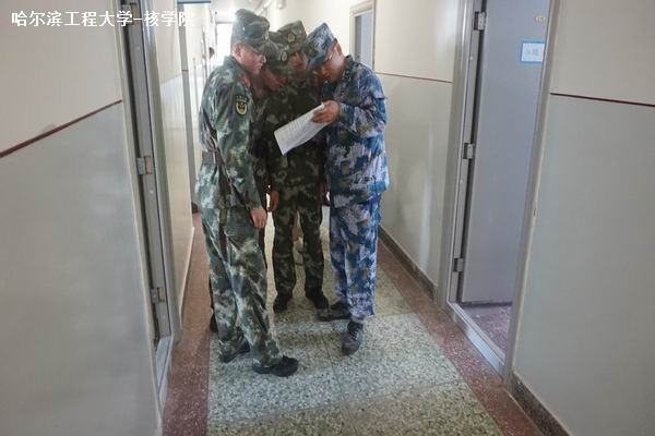 夕阳西下,同学们回到宿舍,进行了宿舍内务清理。辅导员李灵东和教官深入宿舍检查内务,并对于寝室情况进行了点评。