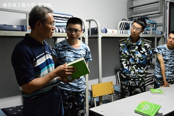 9月8日晚七点,核公司经理夏虹,党委书记兼副经理郭黎滨,党委副书记田凯,新生辅导员李灵东来到2016级新生寝室,看望军训中的新同学们。