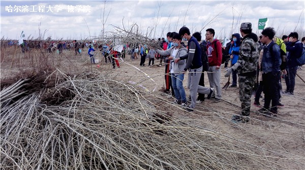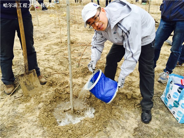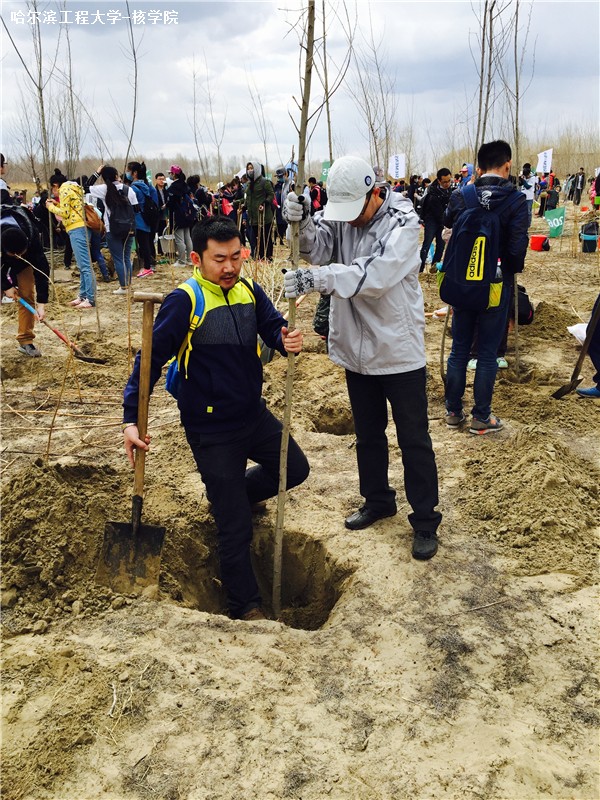 4月23日8时,所有人员在哈工大二校区全体集合,乘大巴车前往处于哈尔滨市道里区的太平镇太平村植树地点。核化工系植树队属于206小分队,下车后植树队在队长带领下步行2000多米到达松花江畔植树地点,井然有序地进行着取锹、挖坑、取苗、种苗、浇水等活动,在3个多小时的植树活动中,大家齐心协力,共同栽种树木20棵。大家用自己的双手种下象征茁壮成长的小树苗非常有意义,同时也能保护我们的家乡、绿化我们的家乡、美化我们的家乡。