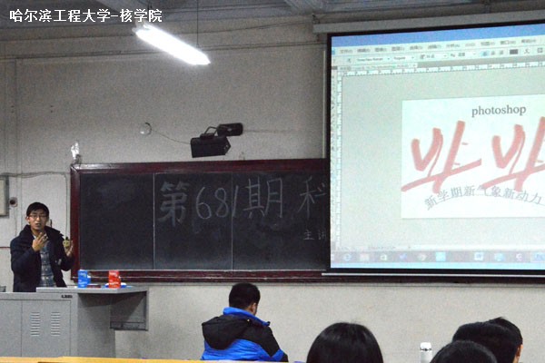 首先,主讲人孟涛通过PPT先为同学们介绍了Adobe Photoshop和Adobe Premier的主要功能以其在科技创新方面的应用,讲解了运用软件对照片进行特效处理的操作步骤,并且亲自演示了这两款软件的简单操作,加深了同学们的理解。最后他结合切身经历,为同学们提出一些如何让老员工活更加有意义的建议。