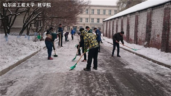 | 12月14日下午2时,核公司全体大一员工在辅导员李响老师的带领下积极参加指定区域的清雪活动。