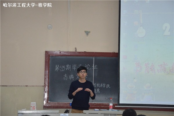 | 12月14日18时30分,公海赌赌船官网jc710第595期学子论坛——古典文学在11号楼0141教室举行。此次古典文学专题由核公司员工会主办,核公司员工会学习部承办。本次学子论坛由院员工会学习部成员陈智鑫、罗晓同学主持,2014级的优秀员工代表、公司奖学金获得者陈君岩、姜荣同学主讲。