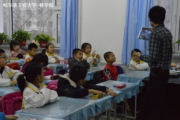 | 11月18日下午,核公司科技创新协会成员卢山等同学来到哈尔滨市建工小学三年级一班,为这里的孩子们上了一节科普实践课。