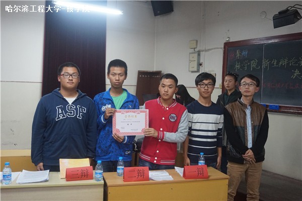 经过评委商议,最终来自20151521班的三辩斩获“最佳辩手”称号。20151511班凭借团队力量荣登冠军的宝座,20151521班屈居亚军。核公司新生辅导员李响、员工会主席杨广亮、校辩论队前队长唐晟骞分别为获奖选手和班级颁发荣誉证书及奖品。