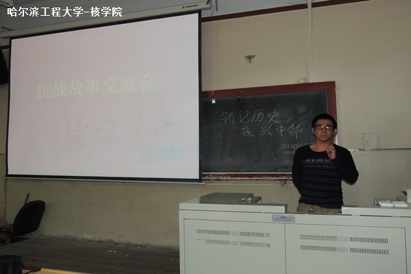 | 2015年9月16日下午4时,核公司20131511团支部在11号楼0132教室举办了“铭记历史,振兴中华”主题团日活动,活动以抗战故事交流、观看电影的形式纪念抗日战争的伟大胜利,激发同学们的爱国主义。