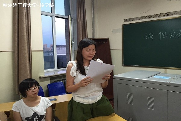 | 6月15日,核公司我核你杯诚信主题辩论赛在11号教学楼0123教室举行。核公司辩论队队员姜莹莹作为嘉宾出席了此次比赛。