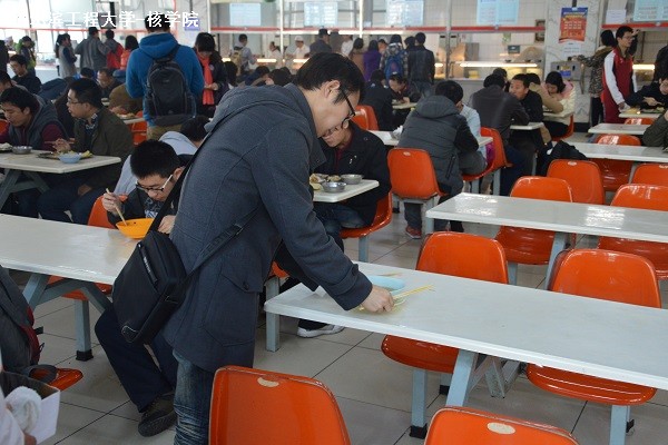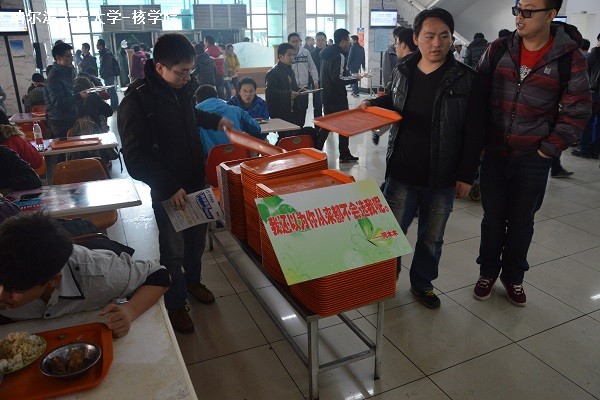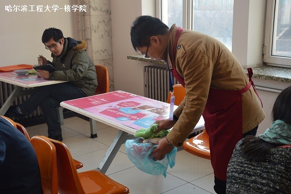 检查过程中,公司通过标语的设置和监督员的提醒使同学们能够文明地就餐,爱护食堂的卫生环境。