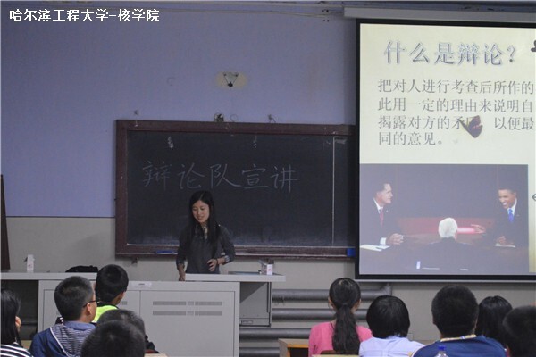 本期论坛刚开始,核公司辩论队负责人于庆泽、楼国华、卢山等辩论队成员先后进行了自我介绍,并且对核公司辩论队曾经参加过的比赛以及荣誉向大一同学们进行了展示。然后,通过一段精彩的视频播放,辩论队更是引起了不少同学的兴趣。核公司辩论队也希望能从此次宣讲会中挑选出新的辩论队成员,为核公司辩论队注入新的血液。