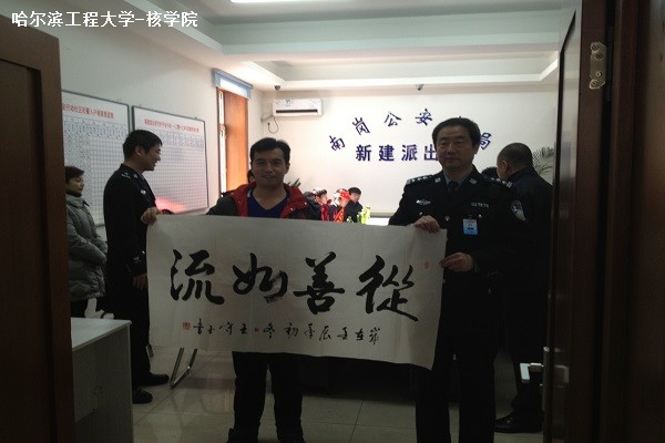 我们为派出所民警带去了一些水果,希望他们在辛苦的工作之余,可以注意自己的身体健康。我们的志愿者更是与他们展开了心与心的沟通,聊工作,聊家庭,聊学习,聊生活。我们积极乐观的态度更是感染了那些派出所民警,他们羡慕并希望和我们一样年轻充满活力。最后,作为馈赠,更是有一位老同志,提笔为我们写起了书法,苍劲有力的字让我们深深敬佩。
