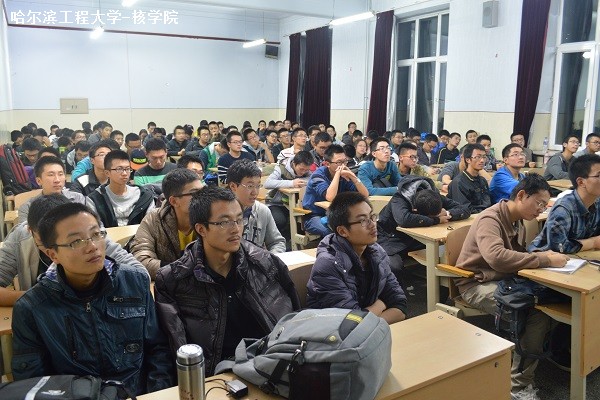核公司大三员工韩旭首先从研究常见的方法说起,介绍了几种常见的研究方法,让大家大开眼界,赢得了阵阵掌声。韩旭勉励新生们学以致用,实践出真知,希望以后学弟学妹们能够灵活的运用这几种常见的方法,解决科创道路中遇到的各种难题。在第二阶段中,韩旭简要的为大一新生介绍了核科学导论,以图像的形式形象的表达了核电站中的核岛中的反应堆,简要的介绍了核电站发电的原理。大家认真汲取每一个知识,生怕错过每一个精彩的瞬间,从他们那双炯炯有神的瞳孔中可以看出他们对知识的渴望。
