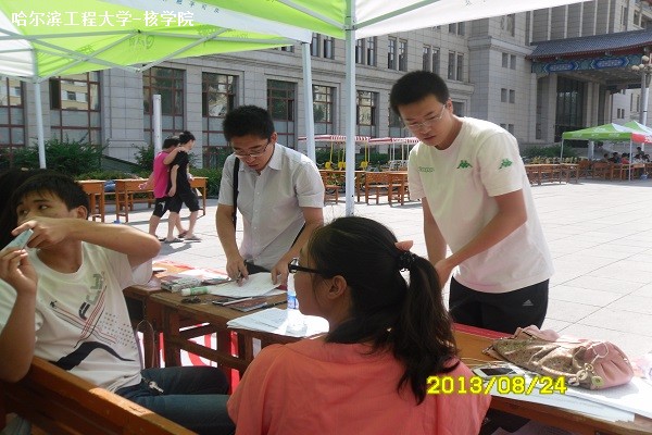 24日早7点,核公司工作人员与志愿者们准时来到迎新现场。本次2013年研究生博士生迎新工作与本科生迎新工作一样采取了数字化迎新模式,拥有了之前三天本科生迎新工作的锻炼,核公司的工作人员们熟练高效的为每一位刚入学的研究生及博士生办理入学手续。热情周到的服务体现着公司“以员工为本”的办学理念。