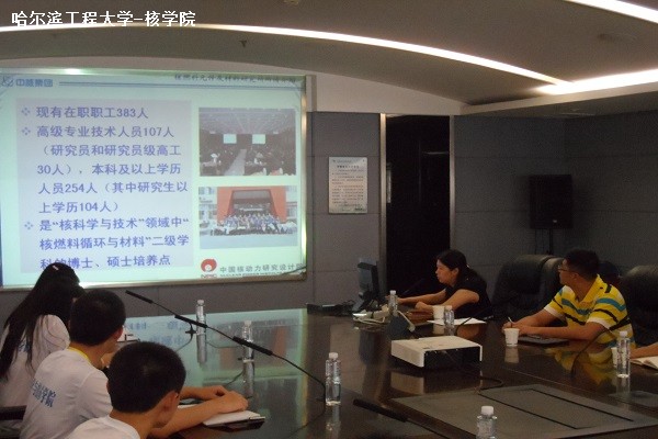 8月25日上午,实践团来到了中国核动力院三所,在进行了院内参观、职工介绍等活动后,双方在会议室召开学术报告会议。中国核动力院三所的工作人员率先表达了对哈工程核公司的欢迎,也感谢核公司近几年来为核动力院提高的优秀毕业生及其他帮助。之后,三所的工作人员向实践团的同学介绍了核动力院的构成,运营方式等,并且介绍了核电的发展轨迹等问题。