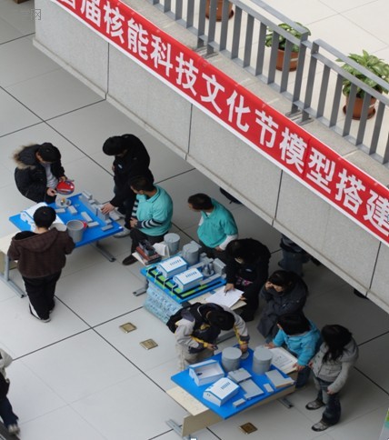 闭幕式一结束,我“核”你志愿者服务队的志愿者们便投入到了紧张的制作过程中,志愿者们分头行动。一部分负责买材料,一部分上网查资料,讨论确定模型的各个部件,包括安全壳,核反应堆堆心,蒸汽发生器等多个部件。由于志愿者们大部分都是大一大二的,还未进入专业课的学习,所以对核电站了解比较少,颇费了很多心思去研究核电站模型,期多次求助了老师,去图书馆借了很多专业书籍来研究,很是用心。