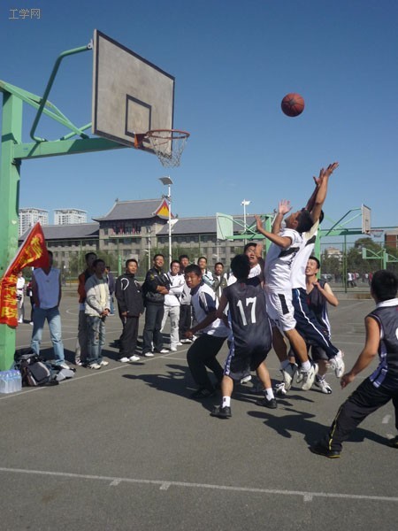 结束军训不久的新生们,在篮球场上个个生龙活虎。拦截、抢球、上板、投球……每个动作都很到位。拉拉队的热情也很高,加油呐喊声不断。