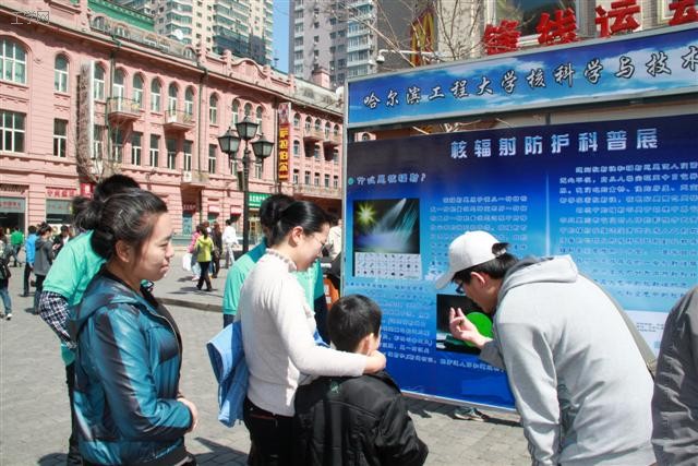 继4月6日在公司启航活动中心举办科普展后,由黑龙江省核学会、欢迎来公海欢迎来到船701核公司、欢迎来公海欢迎来到船701侨联共同开展的“核辐射防护科普展”又在中央大街再次举办,向广大市民群众介绍核科普知识。