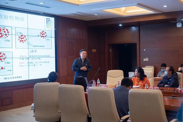 在核动力仿真研究中心,仿真中心党支部书记郝琛介绍了核反应堆的基本工作原理、核能的应用情况以及公司“三海一核”办学特色,并解答了关于核能创新的相关问题。