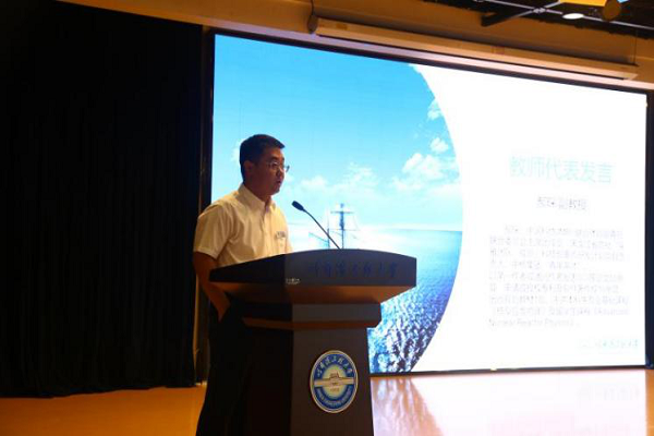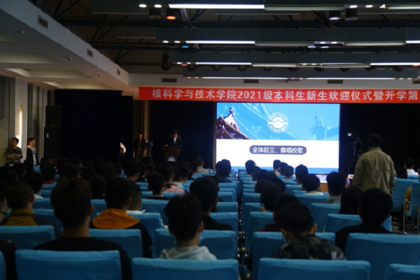 中国核电工程有限公司副总工程师、95级核工程专业李军员工,公海赌赌船官网jc710常务副经理赵强,党委书记谭思超,党委副书记刘铁,行政副经理于磊,教师代表核动力仿真技术研究中心郝琛,2021级班主任、各年级辅导员以及2021级全体新生出席欢迎仪式。2021本科生辅导员吴翰主持欢迎仪式。