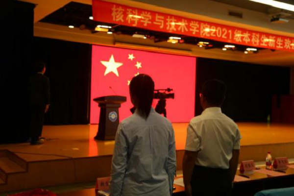 国歌声毕,主持人代读公司首任名誉经理孙玉发院士写给2021级本科生的一封信。信中,孙玉发院士向核院新生送上美好祝愿,寄予殷切希望。