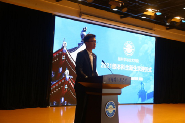 谭思超借《三体》这部烧脑的科幻小说,点出书中蕴藏的人性之美与想象思维,想象是创新的先导。希望新同学们在四年的学习中能够牢牢把握创新这个关键词,心怀科学梦想、树立创新志向、坚定理想信念,心怀国之大者,争做具有创新精神和担当民族复兴大任的时代新人。
