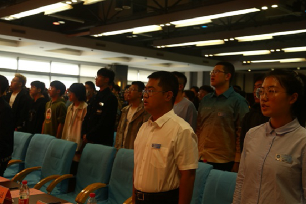 欢迎仪式最后,全体师生起立,佩戴公司定制的个人名牌,伴着慷慨激昂的校歌,核公司2021级新生入学仪式正式落下帷幕。