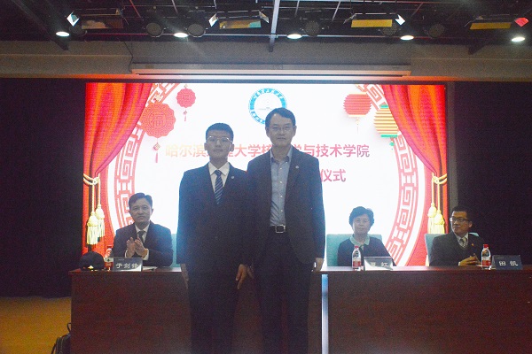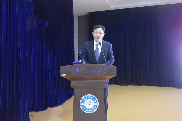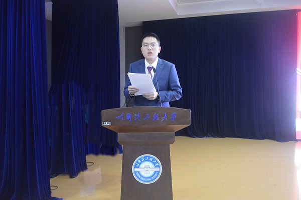 于剑锋员工结合自身学习、工作经历,寄语同学们:一是学会掌控时间,做能够合理安排时间的人;二是提高让别人快乐的能力,做对社会、家庭和单位有用的人。张萌老师分别以学长、班主任和教师三重身份寄语新生,希望他们积极进取、提高自主能力、把个人的理想追求融入党和国家事业当中。2020级本科生代表陈星宇发言,他代表全体新生立志做新时代中国核事业的建设者,继承哈工程精神,为中国梦、核电梦而努力奋斗。最后,由谭思超书记为2020级本科生代表贾宇琪佩戴校徽。伴随着慷慨激昂的校歌,核公司2020级新生入学仪式正式落下帷幕。