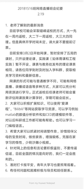 2月19日,核公司20181516班班主任乔守旭老师找到本班的班长和团支书,表达了开展一次线上直播班会的想法,三人对班会内容,时间安排等事项进行了讨论,并确定于当天晚上19:30通过腾讯会议软件进行直播。乔老师主要从网课的开展方式,假期规划的建议,以及重视平安行动和青年大学习等方面进行了详细的介绍,会议最后安排同学们自由提问,乔老师一一详尽亲切地解答,会议氛围严肃而不失活泼。会后,团支书整理会议纪要发到班级群中以便未与会的同学查看。