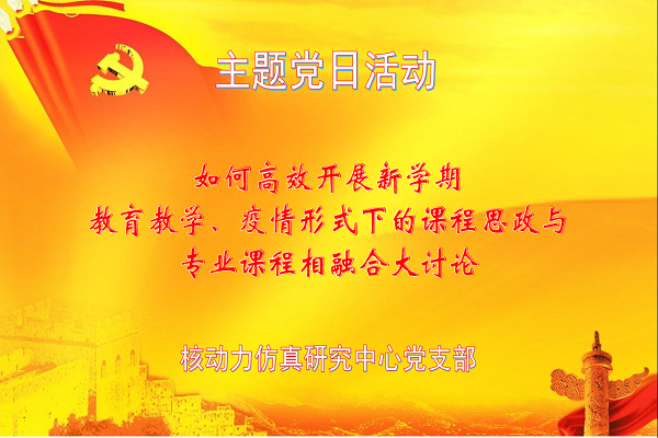最后,核动力仿真研究中心主任张志俭教授结合当前疫情防控情况和公司的要求,强调了在这种特殊情况下做好各项教学工作的重要意义,鼓励大家多交流探讨,上好每一堂课,积极挖掘疫情防控期间的育人元素,落实好“停课不停学、停课不停教”的工作要求。同时要求广大党员要充分发挥先锋模范作用,冲锋在前,勇挑重担,为打赢疫情防控阻击战贡献力量。