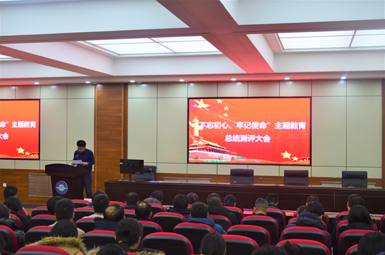 1月7日下午两点,核公司分党委在31号楼202学术报告厅召开了“不忘初心,牢记使命”主题教育总结测评大会,会议由分党委书记谭思超主持,公司主题教育第十巡回指导组组长钟卫东和组员张彬参加了会议。