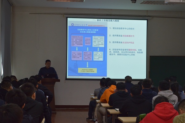 随后由实验教学中心訾刚老师介绍了实验中心实验室准入制度,化学试剂的购买、领用和实验室使用的一些要求和注意事项,并特别强调了实验玻璃器具,离心管的使用问题及实验室用水,电线老化问题和卫生问题。同时核化工系矫彩山教授强调了实验室安全的重要性,并以生动的具体事例(如:物品摆放问题、实验室操作不当等问题带来的一系列安全问题)来引导师生重视安全,提高安全意识,学习安全知识。