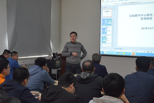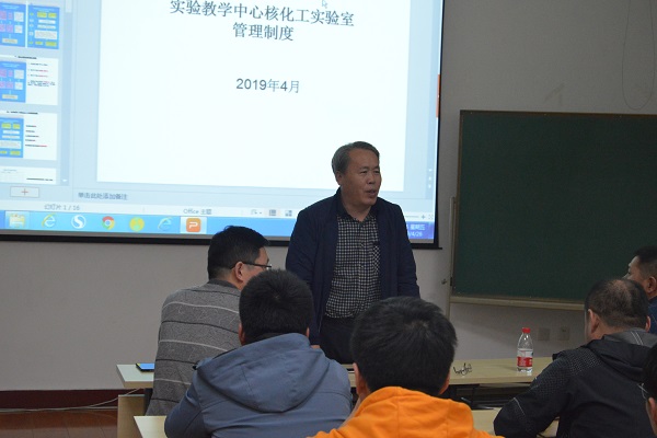 4月26日下午,实验教学中心在31号楼370会议室召开了核化工实验室安全培训。会议由公司副经理、实验教学中心主任田瑞峰教授主持。实验教学中心和核化工系全体教师、核化工系全体研究生以及本科生参加了此次培训会。校保卫处张世彤副处长,校保卫处技术安全科张国栋科长、孙剑老师也莅临指导并参加了此次培训会。