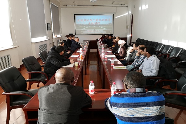 考察结束后,杨大助副总干事与核公司20余名中国政府原子能奖学金职工及职工导师代表进行了亲切的座谈交流,首先对员工们受到国际原子能机构资助的情况进行简要的了解,然后通过员工逐一发言,了解员工在公司的学习和科研情况。来自不同国家的职工对其国家的核能发展情况进行了介绍,并表达了自己要为核能领域做贡献的决心。杨大助副总干事希望公司可以积极协调对接国内核能核电企业、院所,为职工提供优质的实习、实训条件。目前核公司已经与中核集团、中广核、中船重工等下属的企业、院所建立起了实践教学基地。下一步公司将计划安排职工去实践基地进行科研实践。