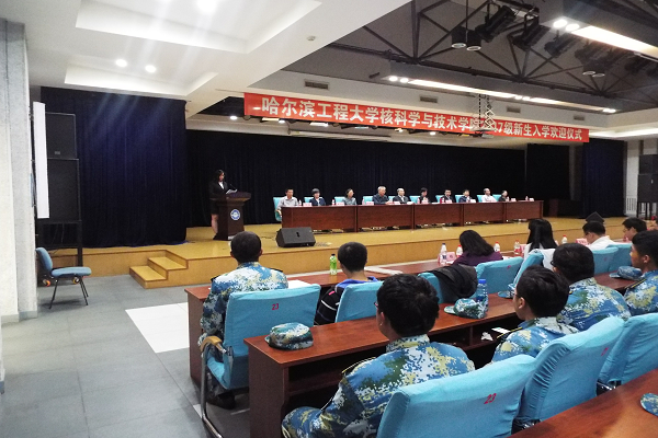 主持人宣布新生入学欢迎仪式正式开始,全体起立,雄浑的国歌响起。主持人介绍到会的来宾、公司领导和老师。首先邀请孙玉发院士致辞,孙院士欢迎同学们来到公海赌赌船官网jc710学习,并向同学们介绍了工程学子在各个领域取得的骄人成绩。希望同学们能够早日适应大学环境,珍惜现有的学习机会,努力学习,为核事业贡献出自己的一份力量。
