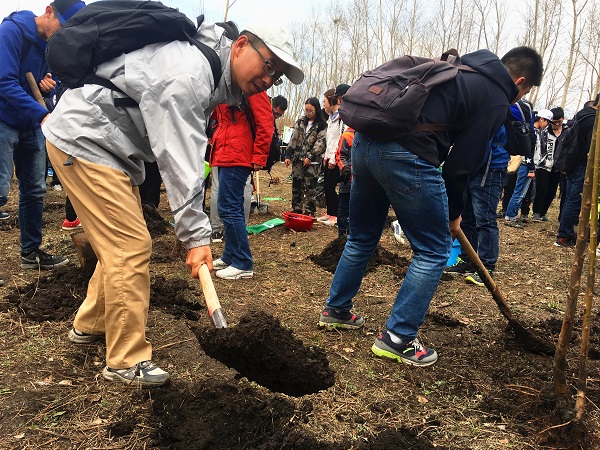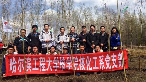 2017年4月23日,核化工系党支部在党支部书记马福秋的带领下,15名党员及部分志愿者参加了由哈尔滨工业大学绿色协会主办的植树活动。早上,所有成员准时到达了集合地点,一同乘车前往平房区哈达村植树地点。植树过程中,党员们分工明确,按照之前所学的植树流程及标准,将一颗颗柳树苗栽植到指定地点,通过半天的辛勤劳动,植树20余棵,完成了所有植树任务。虽然大家脚底全是潮湿的泥土,但眼前这一片新生的春意让大家心生欢喜。