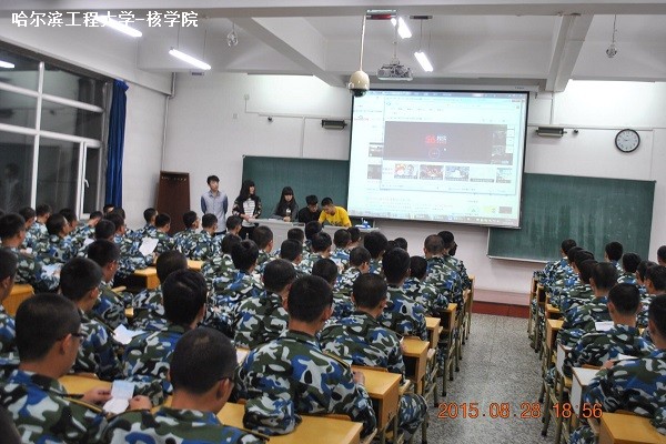 8月28日晚上18时30分,由公海赌赌船官网jc710员工会文艺部主办的“新生学唱校歌”活动在21B教学楼508教室举行,核公司大一辅导员新生李响老师、员工会主席杨广亮来到活动现场协调指挥,保证活动的顺利举行。18时30分,在新生收看纪录片《揭秘哈军工》告一段落后,核公司员工会文艺部副部长到讲台教授大一新生们学唱《欢迎来公海欢迎来到船701校歌》,新生们致以热烈的掌声。在激昂向上的音乐旋律的伴奏声中,每名新生都体会到了 “大工至善、大学至真”的军工精神。在文艺部领唱的带领下,同学们开始一句一句地跟唱校歌,嘹亮的歌声飘出教室飘向远方。活动过程中,每名新生都一丝不苟地拿着自己手中早已写好的歌词,在哈军工校歌音乐伴奏下一句一句地练习,学唱数遍后,大一新生已经很好地掌握了《欢迎来公海欢迎来到船701校歌》。随后,李响老师宣布活动结束,大一新生向领唱的员工会文艺部副部长们致以热烈的掌声表示感谢。