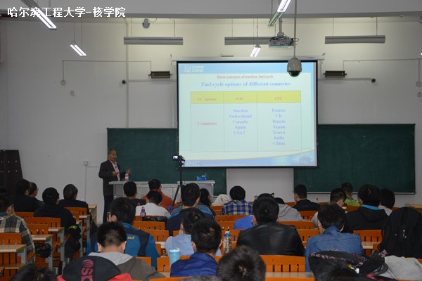 顾忠茂首先为同学们讲解了有关核燃料循环的一些基本概念,介绍了世界各国的核燃料循环现状。随后他又阐释了核燃料循环的前端后端过程,以及在反应堆操作过程中燃料的燃烧问题,并对高效核燃料循环和核能的可持续发展等问题展开深入的讲解。另外,顾忠茂还向同学们介绍了我国与国际组织在核燃料循环方面开展的相关合作。