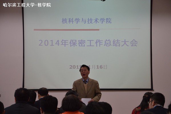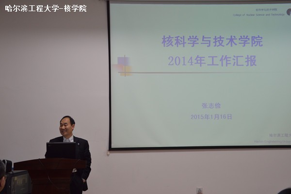 核公司经理张志俭作公司全年工作总结报告,他分别从人才培养、科学研究、团队队伍、综合管理等四方面介绍了公司2014年取得的成绩,并指出,公司2015年要紧密围绕院系目标责任书和“十三五”规划,努力增强学科核心竞争力,加强团队队伍和青年骨干培养,助力公司更好更快发展。
